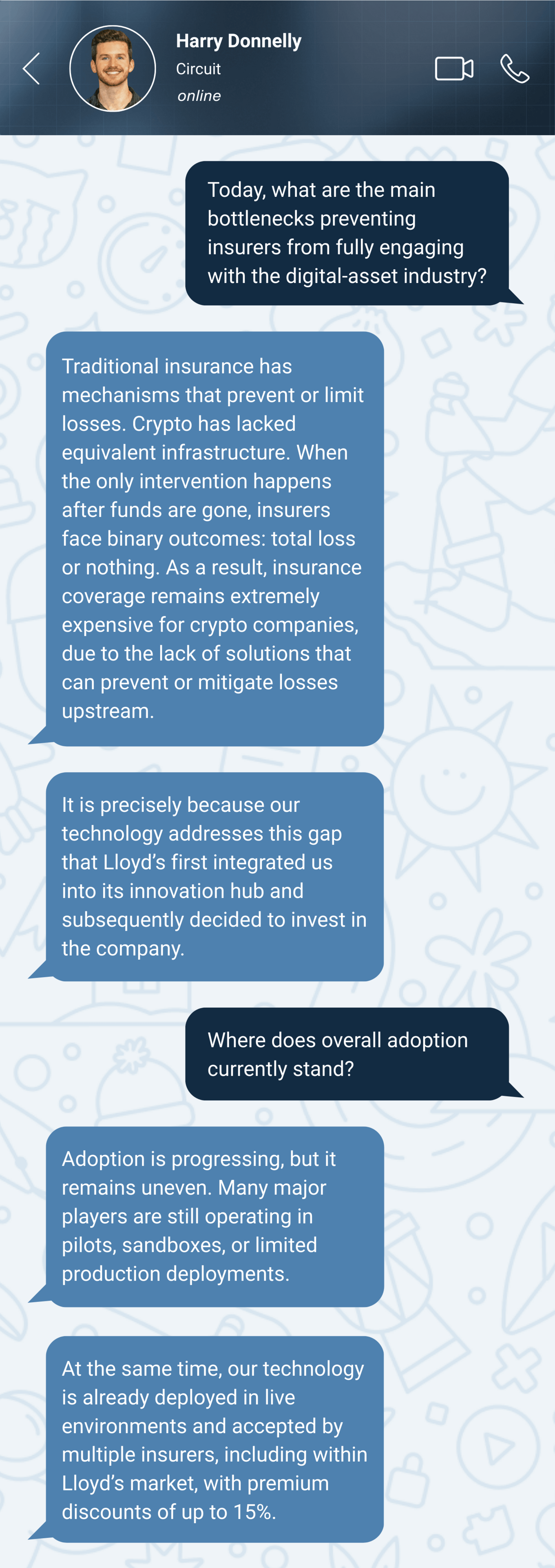 Behind-the-scenes: We spoke with Harry Donnelly, CEO and founder of Circuit, to better understand the key bottlenecks insurers face when entering the digital assets industry and the current state of adoption.